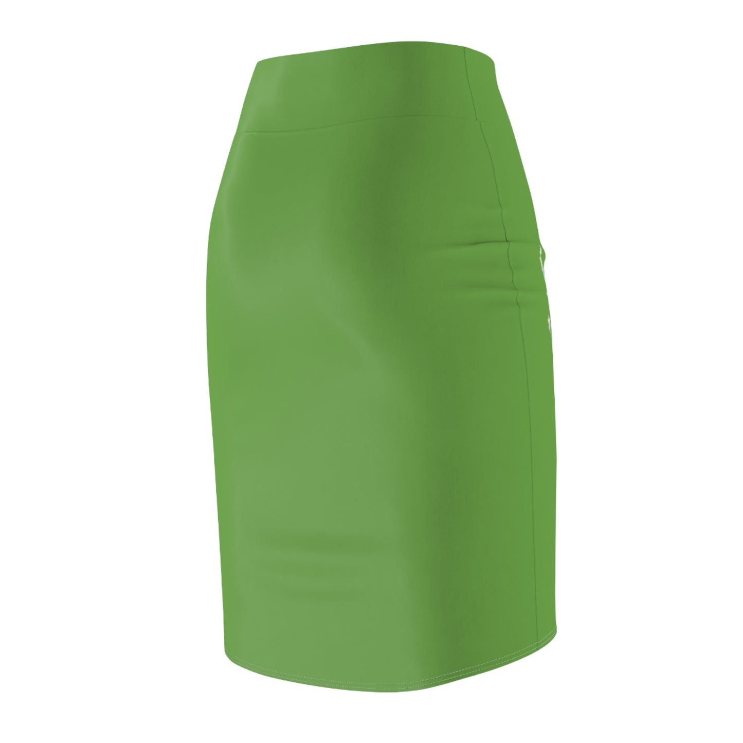 Green Women's Pencil Skirt (AOP) with Spring Flowers and Butterfly