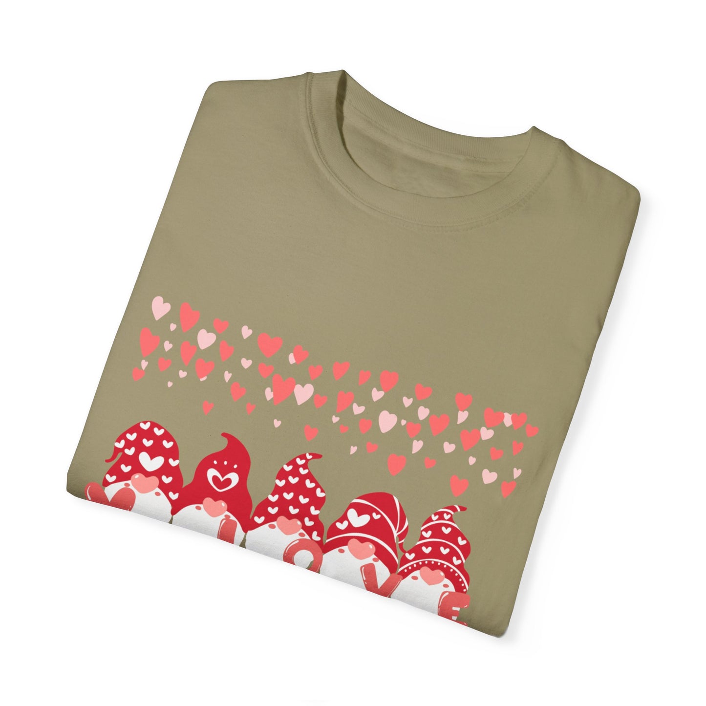 This t-shirt is a perfect Valentines Day gift for her, featuring cute heart prints. It offers a relaxed fit and a classic crew neckline, making it suitable for both casual and semi-formal occasions. This unisex garment-dyed t-shirt is made with high-quality, medium fabric for long-lasting comfort and comes in 58 different colors. Ideal for adults looking for a comfortable and stylish shirt for various occasions.