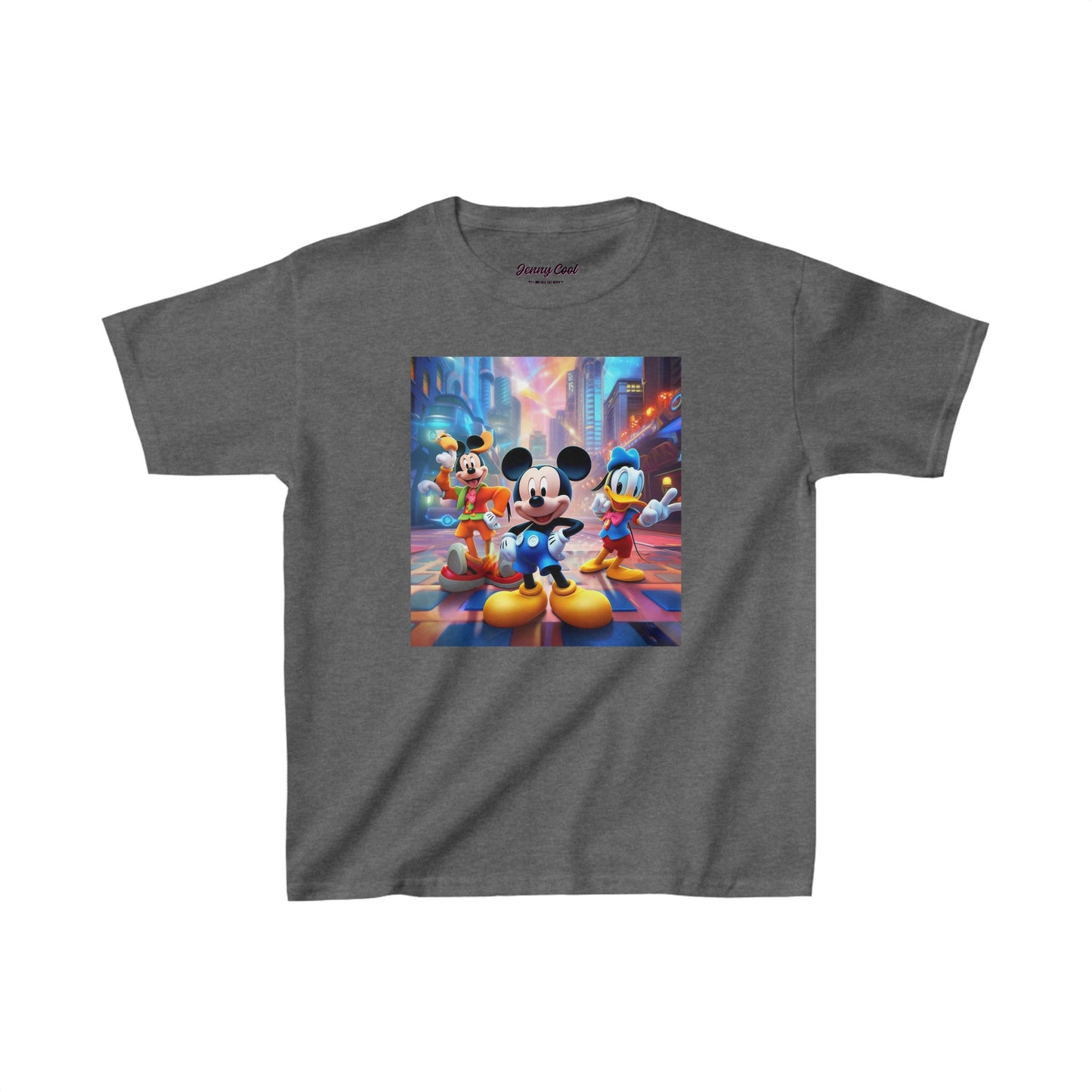 The kids heavy cotton tee is perfect for everyday use. The fabric is 100% cotton for solid colors. Polyester is included for heather-color variants. These fabrics are prime materials for printing. The shoulders have twill tape for improved durability. The collar is curl resistant due to ribbed knitting. There are no seams along the sides.