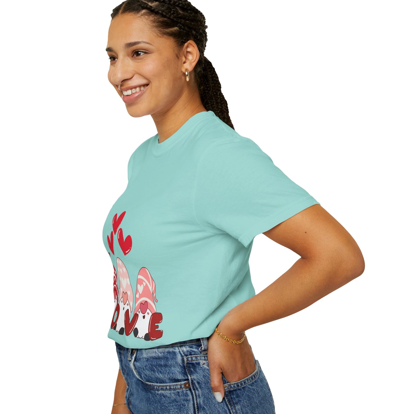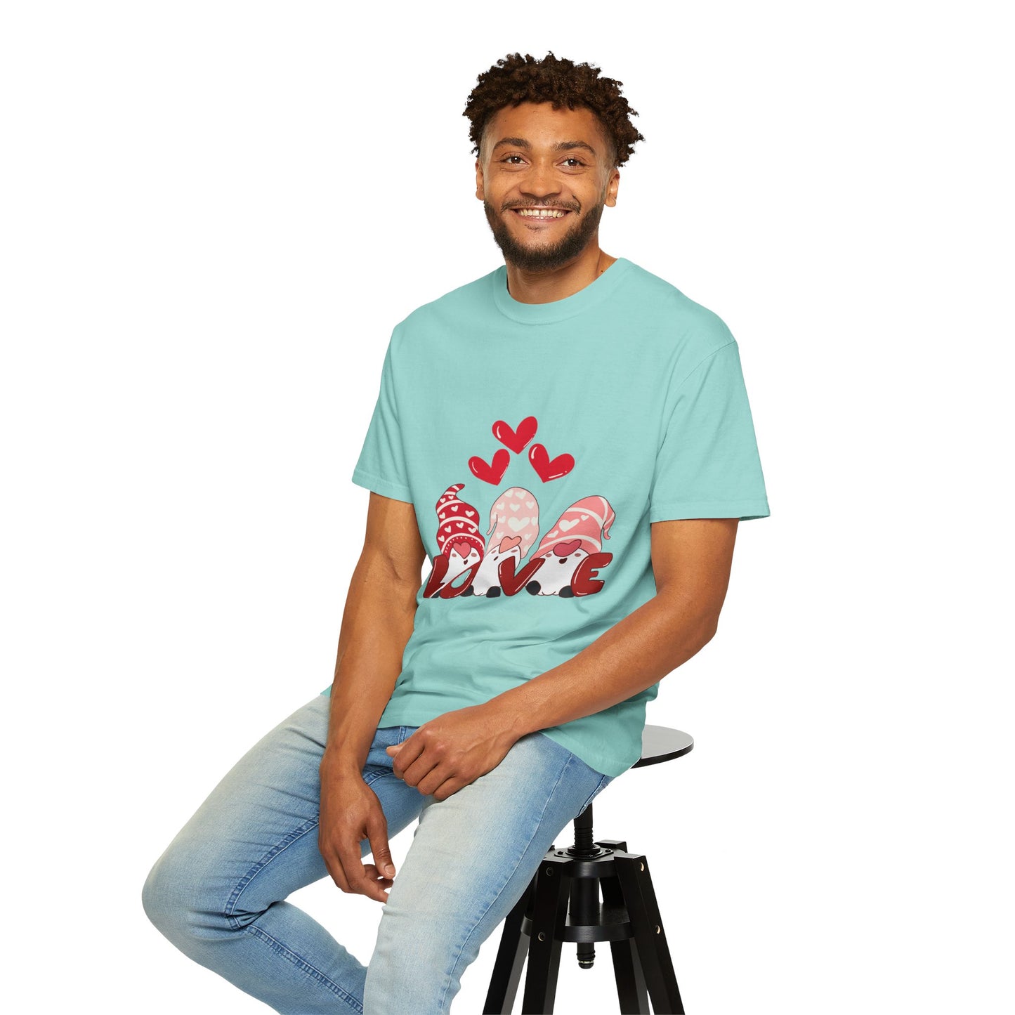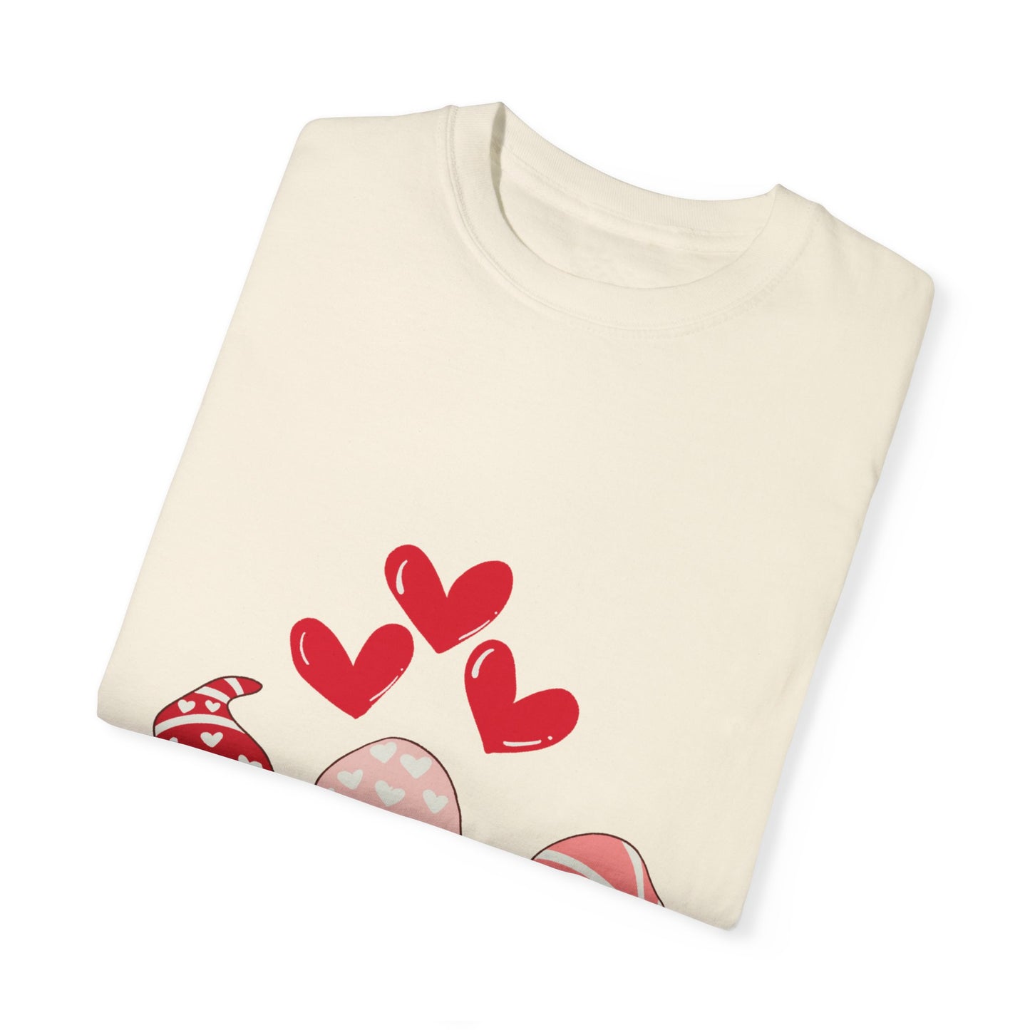 This t-shirt is the perfect Valentine's Day gift with its love and heart prints. It exudes a romantic and heartfelt vibe, making it ideal for lovers and those celebrating love. It is relevant for Valentine's Day, anniversaries, and special occasions.