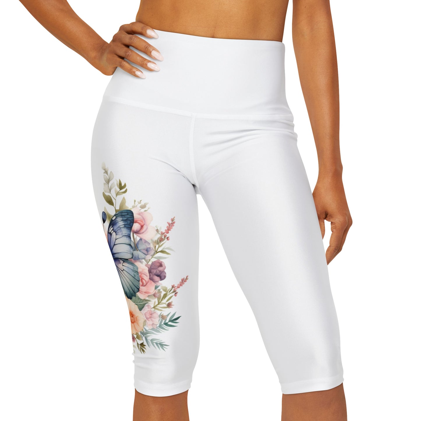 Yoga Capri Leggings (AOP) with Butterfly Design